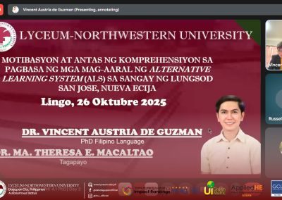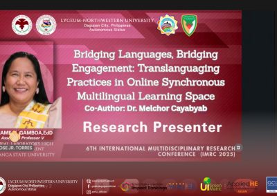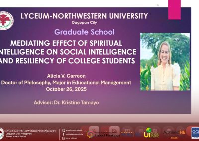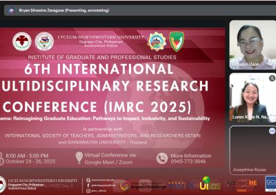 Researchers and presenters from various IGPS programs proudly showcased their innovative studies, contributing to the conferenceโ€™s goal of promoting ๐’“๐’†๐’”๐’†๐’‚๐’“๐’„๐’‰, ๐’Š๐’๐’๐’๐’—๐’‚๐’•๐’Š๐’๐’, ๐’‚๐’๐’… ๐’”๐’–๐’”๐’•๐’‚๐’Š๐’๐’‚๐’ƒ๐’๐’† ๐’…๐’†๐’—๐’†๐’๐’๐’‘๐’Ž๐’†๐’๐’• across disciplines. Their works reflected the Lycean spirit of ๐’‚๐’„๐’‚๐’…๐’†๐’Ž๐’Š๐’„ ๐’†๐’™๐’„๐’†๐’๐’๐’†๐’๐’„๐’†, ๐’„๐’“๐’Š๐’•๐’Š๐’„๐’‚๐’ ๐’Š๐’๐’’๐’–๐’Š๐’“๐’š, ๐’‚๐’๐’… ๐’ˆ๐’๐’๐’ƒ๐’‚๐’ ๐’„๐’๐’๐’๐’‚๐’ƒ๐’๐’“๐’‚๐’•๐’Š๐’๐’.