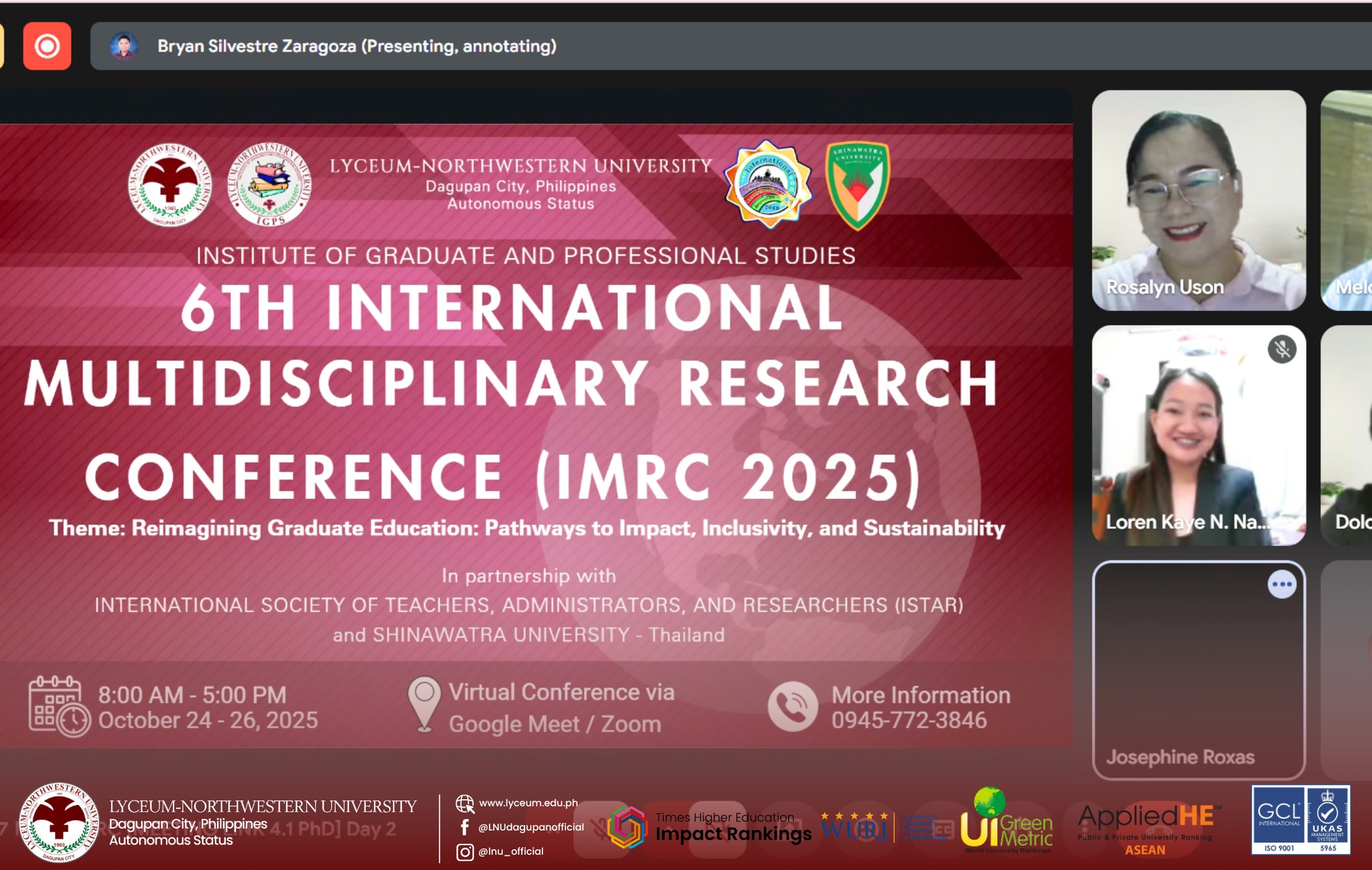 Researchers and presenters from various IGPS programs proudly showcased their innovative studies, contributing to the conferenceโ€™s goal of promoting ๐’“๐’†๐’”๐’†๐’‚๐’“๐’„๐’‰, ๐’Š๐’๐’๐’๐’—๐’‚๐’•๐’Š๐’๐’, ๐’‚๐’๐’… ๐’”๐’–๐’”๐’•๐’‚๐’Š๐’๐’‚๐’ƒ๐’๐’† ๐’…๐’†๐’—๐’†๐’๐’๐’‘๐’Ž๐’†๐’๐’• across disciplines. Their works reflected the Lycean spirit of ๐’‚๐’„๐’‚๐’…๐’†๐’Ž๐’Š๐’„ ๐’†๐’™๐’„๐’†๐’๐’๐’†๐’๐’„๐’†, ๐’„๐’“๐’Š๐’•๐’Š๐’„๐’‚๐’ ๐’Š๐’๐’’๐’–๐’Š๐’“๐’š, ๐’‚๐’๐’… ๐’ˆ๐’๐’๐’ƒ๐’‚๐’ ๐’„๐’๐’๐’๐’‚๐’ƒ๐’๐’“๐’‚๐’•๐’Š๐’๐’.