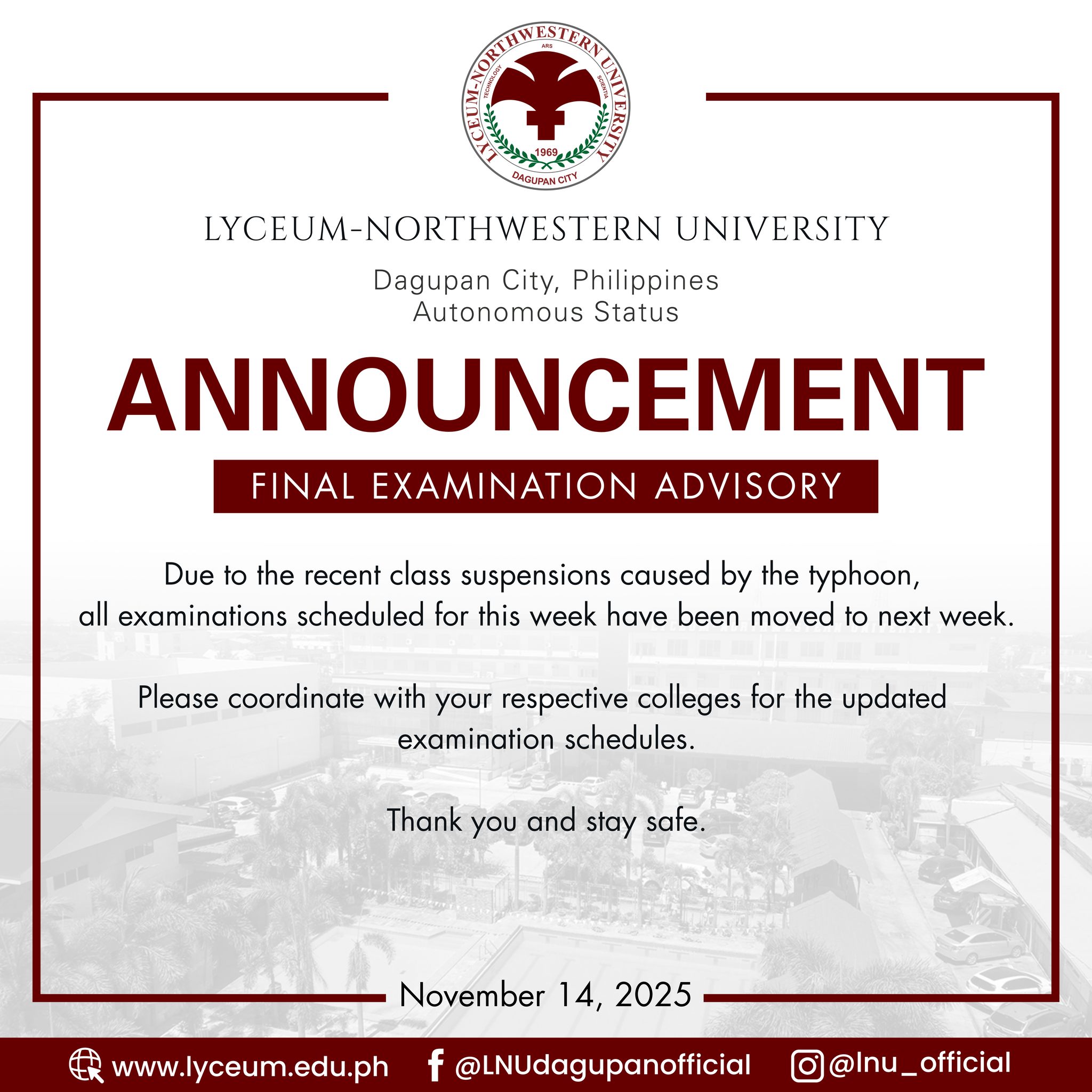 ANNOUNCEMENT | Final Examination Advisory