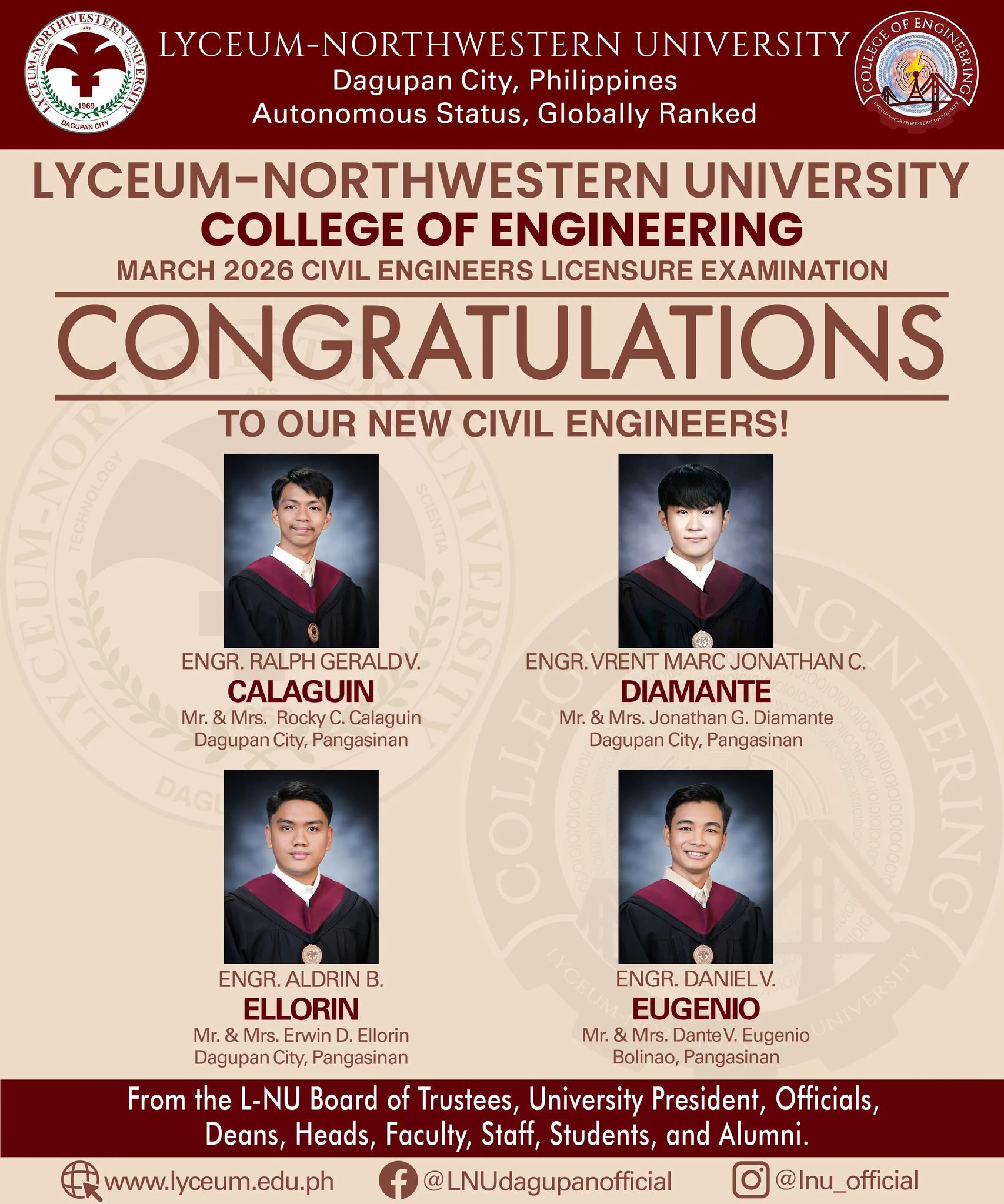 CONGRATULATIONS TO OUR NEW CIVIL ENGINEERS! Warmest congratulations to our passers in the March 2026 Civil Engineers Licensure Examination!