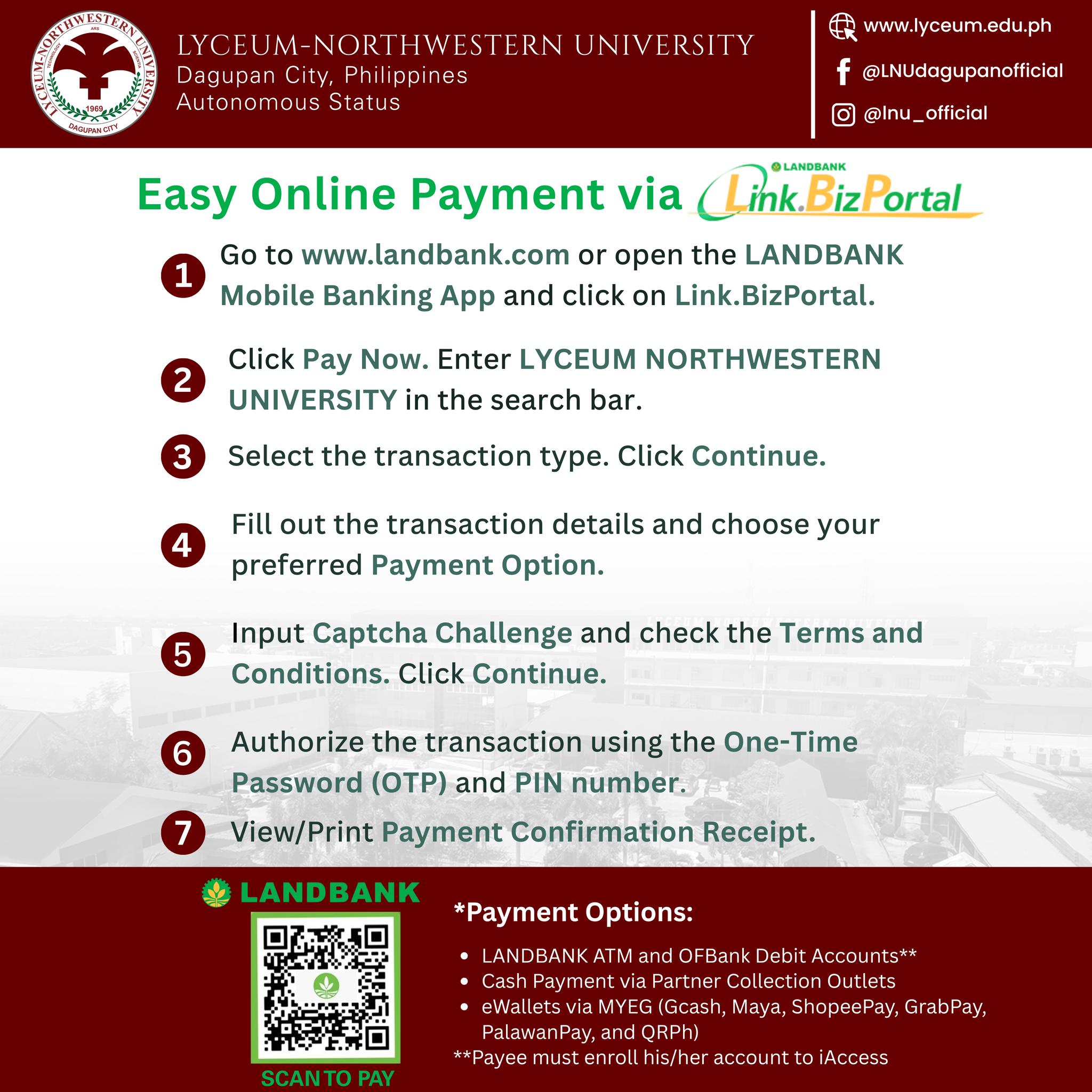 Easy Online Payment via Landbank Link.Biz Portal