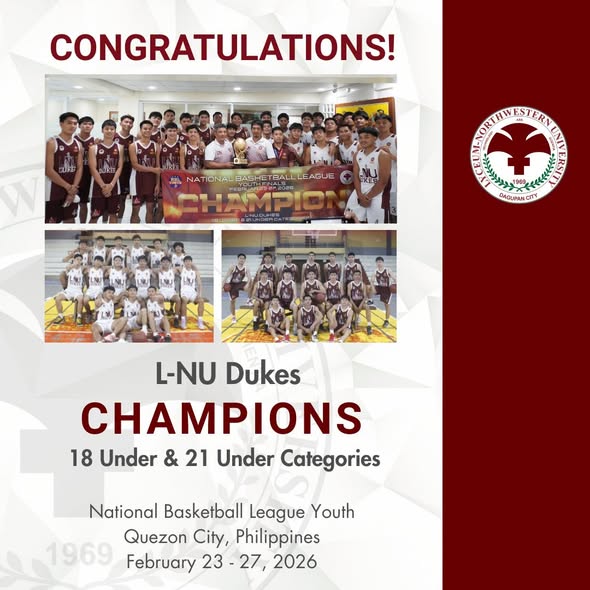 Lyceum-Northwestern University proudly welcomes home our victorious L-NU Dukes from the recently concluded National Basketball League Youth held in Quezon City. Our talented athletes triumphed in both the 18 Under and 21 Under categories, bringing home championship glory and making the entire Lycean community proud.